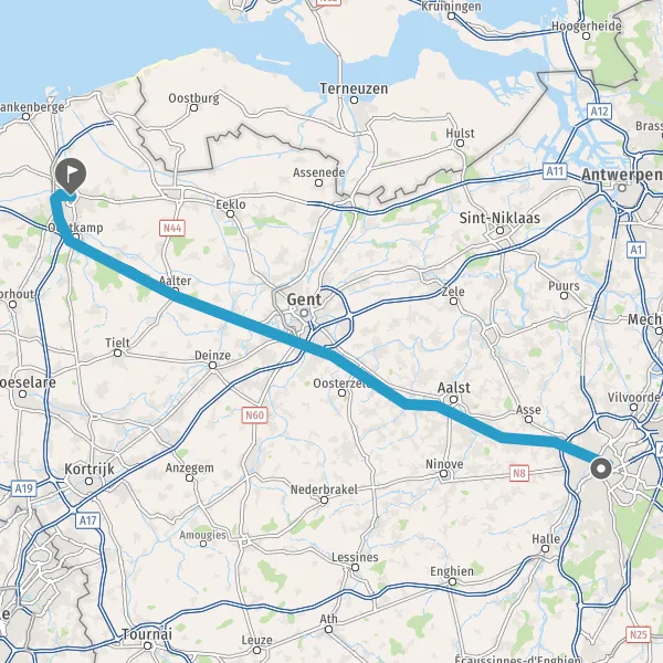 Hou rechts aan op N50 (Brugsestraat) en volg gedurende 1,6 kilometer