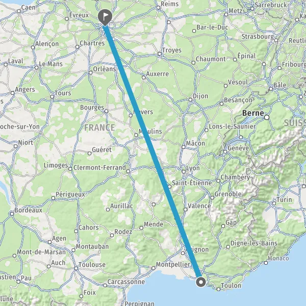 | Afstand met de trein | 663 km à 711 km |