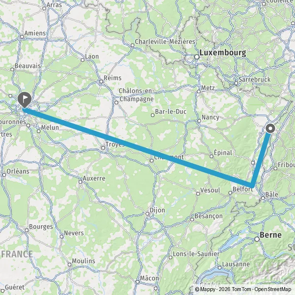 | Afstand met de trein | 400 km à 542 km |