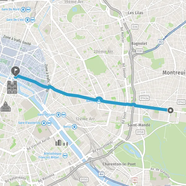 Turn left onto the cycleway Avenue de la Porte de Vincennes and continue for 55 meters