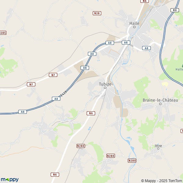 Plattegrond Tubize : kaart van Tubize (1480) en praktische info