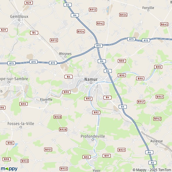 Plattegrond Namen : kaart van Namen (5000) en praktische info