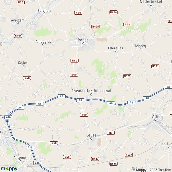 Plattegrond Frasnes-lez-Anvaing : kaart van Frasnes-lez-Anvaing (7910) en praktische info