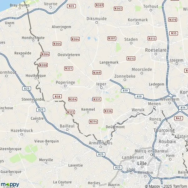 Plattegrond Ieper: kaart van Ieper en praktische info - Mappy
