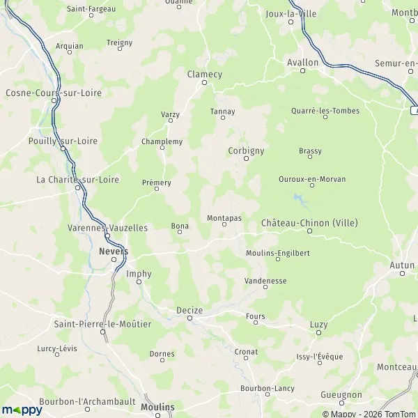 - Kaart Coulanges-lès-Nevers
