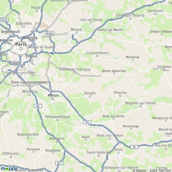 - Kaart Fontenay-Trésigny